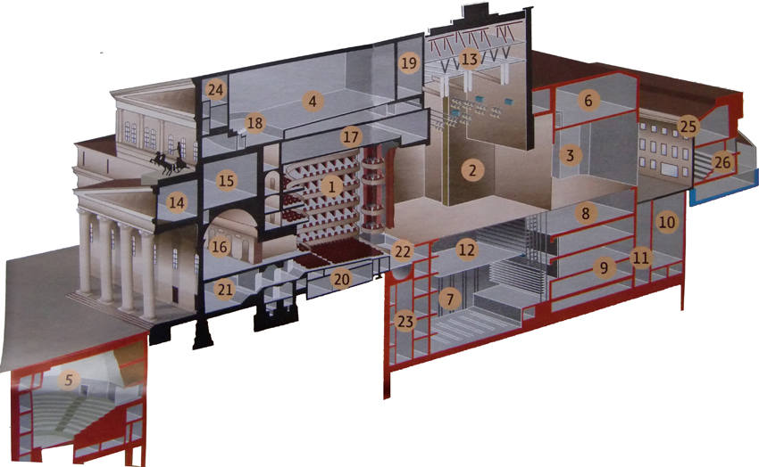 この解体図は2011年のリニューアル・オープンの時にボリショイ劇場が発行したマンスリーの冊子から抜粋したものです。