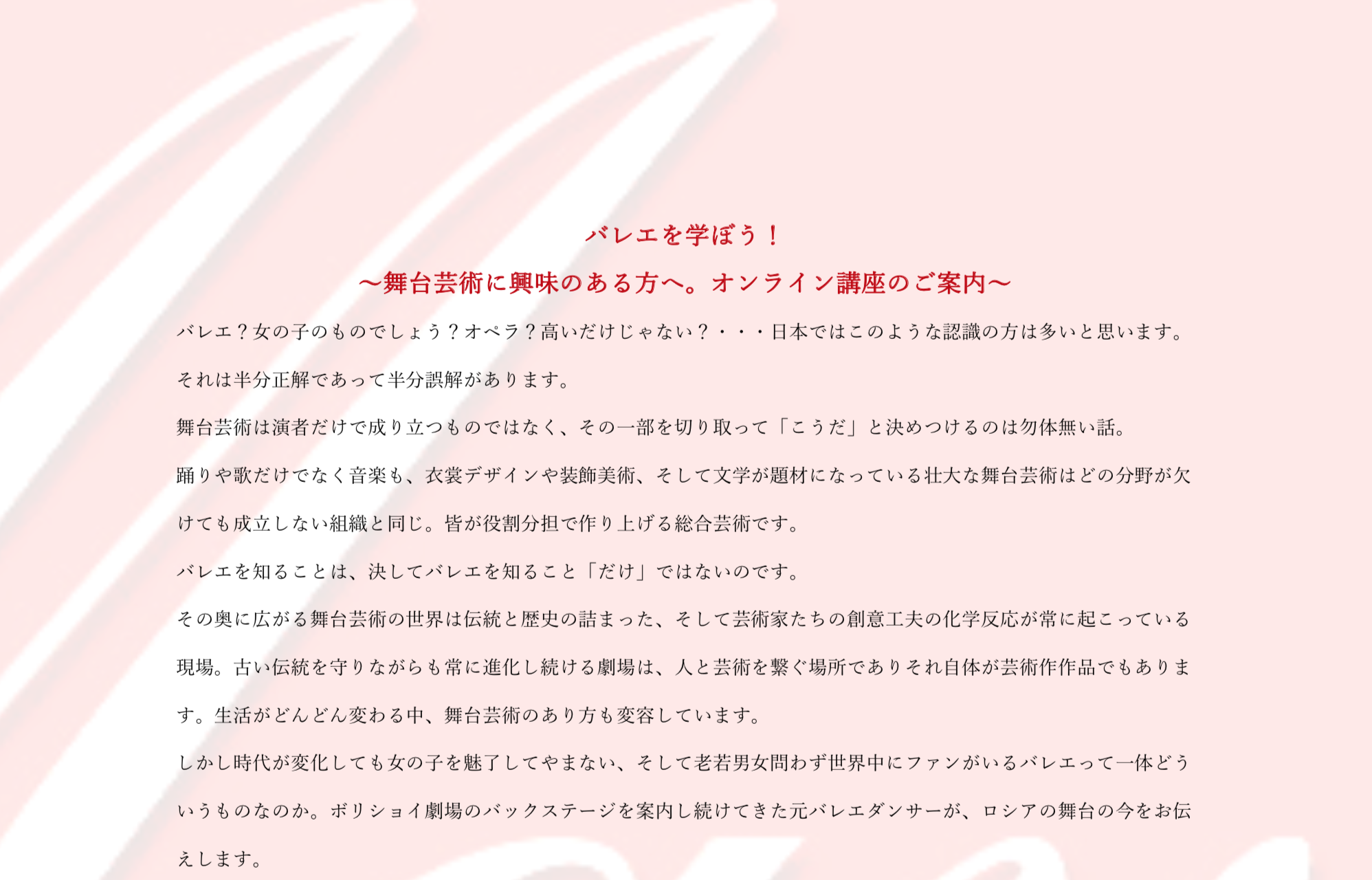 その空気感も併せて発信出来たらと思い、オリジナルのバレエ講義を作りました。